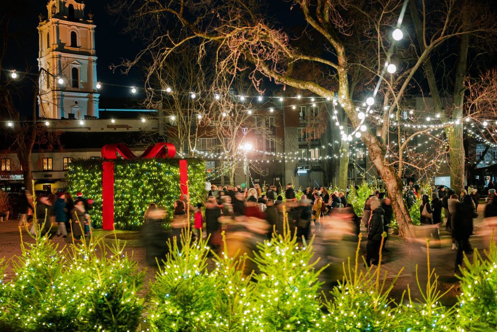 Šventinis sezonas prasidėjo pagrindinės Kalėdų eglės įžiebimu Katedros aikštėje. Trečius metus iš eilės puošiamas natūralus 16 metrų aukščio medis suspindo laikui nepavaldžiais klasikinių spalvų – raudonos ir auksinės – akcentais. Aplink žaliaskarę išsirikiavusios mažesnės eglutės simboliškai sujungė Europos Kalėdų ir Europos žaliosios sostinės titulus.