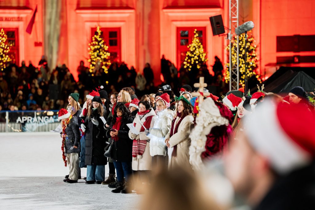 18 valandą Rotušės aikštė virto didžiule sostinės scena: čia greta ledo ir ant jo susibūrė choristai, muzikantai ir miestiečiai, kurie kartu atliko dainą „Have Yourself a Merry Little Christmas“. Šimtai balsų susiliejo į vieną skambesį ir užbūrė miestą šventiška nuotaika.
